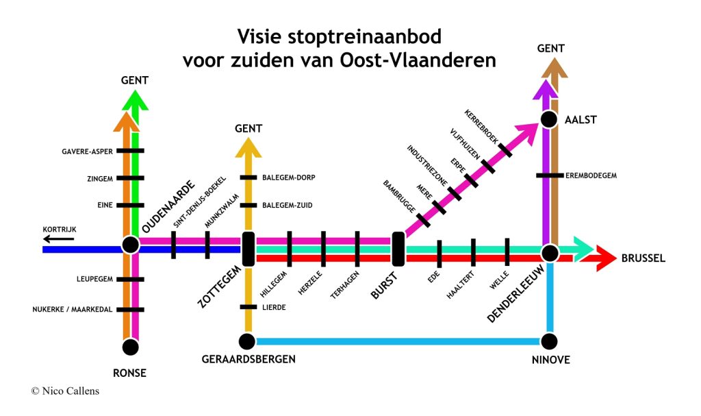 Een nieuwe stoptreindienst Ronse – Oudenaarde – Zottegem – Burst – Aalst hoeft zelfs niet eens zo duur te zijn. Met meer aangepaste treinstellen dan deze die nu worden ingezet tussen Burst en Aalst en mits enige pro-actieve blik op de toekomst, waarbij men een aantal huidige taboes moet durven in vraag stellen, is namelijk veel mogelijk. Lichtgewicht batterijtreinen met sterk optrek- en afremvermogen, haltes op verzoek (waarbij de treinen enkel stoppen wanneer er reizigers moeten afstappen en/of opstappen), treinen zonder treinbegeleider, en in een iets verdere toekomst zelfs zonder fysieke treinbestuurder aan boord, kunnen de kosten aardig drukken terwijl enkele nieuw te openen haltes zoals Nukerke / Maarkedal, Leupegem, Mere en Erpe (het huidige Erpe-Mere blijft daarbij behouden maar wordt omgedoopt tot een halte die de industriezones van Erpe-Mere bedient) nieuw potentieel kan aanboren.